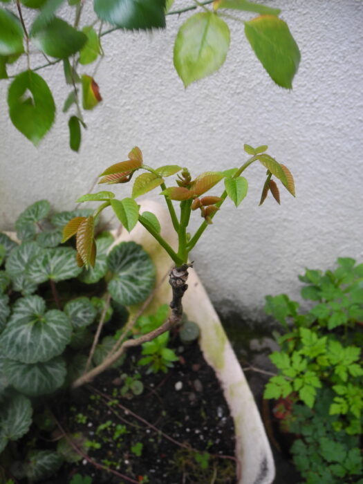 ロウバイがタネから育っています Meloenboompje groeit uit een zaadje
