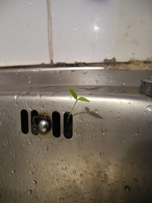 キッチンのシンクから芽が出ました Ontkiemd uit keukengootsteen
